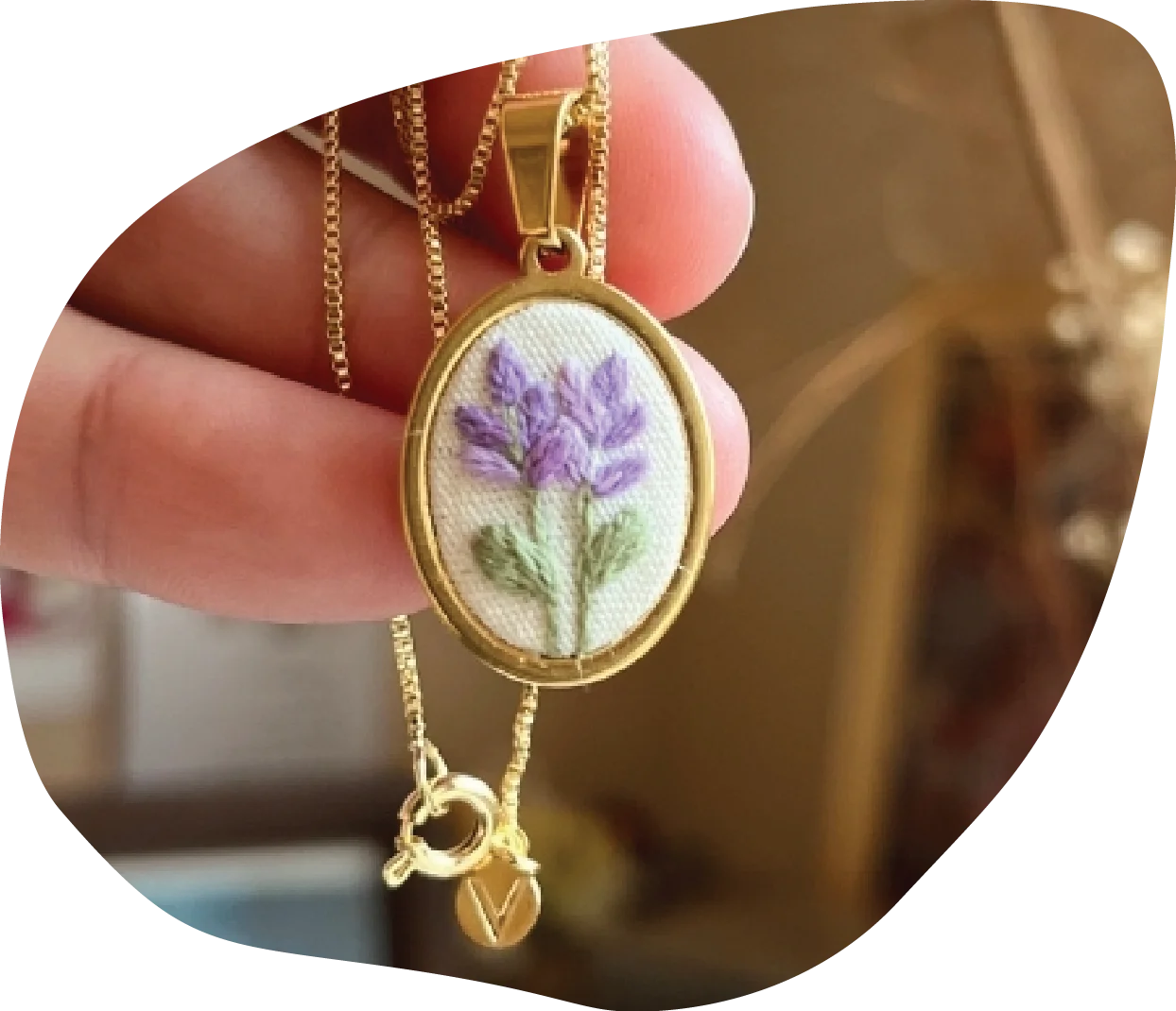O objetivo desta oficina é ensinar a arte do bordado livre aplicado em delicados pingentes de até 3 cm, incentivando cada participante a criar uma peça única, feita à mão. Durante três horas de atividade, as alunas irão desenhar, bordar e finalizar seu próprio pingente, transformando suas ideias em joias cheias de significado. Não é necessário ter experiência: quem nunca bordou aprenderá os pontos básicos do bordado livre, com orientação individual para que cada desenho se torne possível — garantindo que todas concluam sua joia com criatividade e satisfação.
